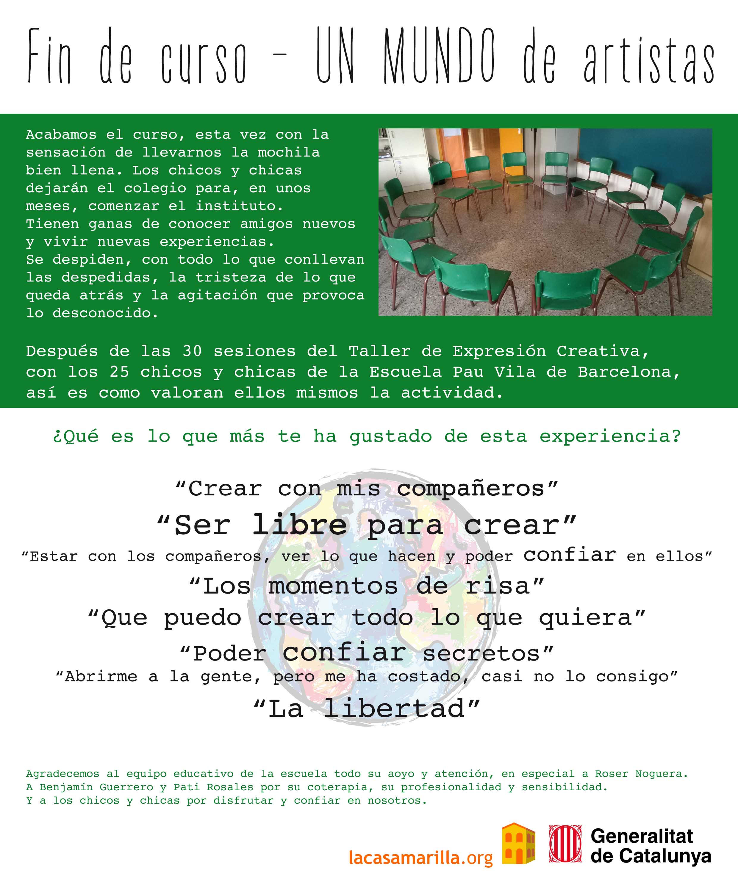 Esta experiencia les ha ofrecido la oportunidad de tener un nuevo espacio en la escuela, un lugar de encuentro consigo-mismos y con los demás, a través del arte. Han explorado sus recursos creativos, a la vez que han re-descubierto sus relaciones.